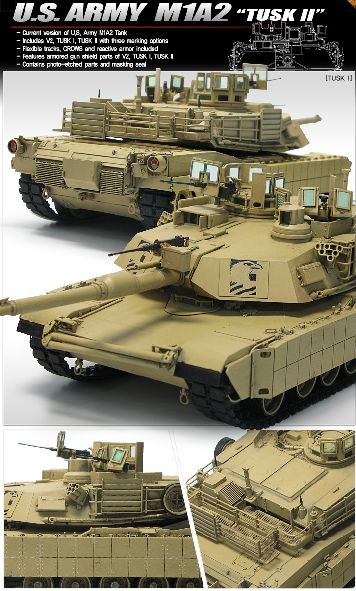 Academy 13298 1/35 U.S. Army M1A2 Abrams TUSK I / TUSK II / V2