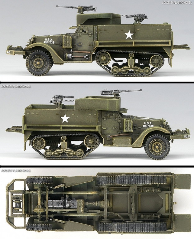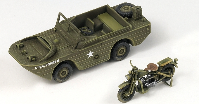 Academy 13408 1/72 U.S. M3 Half Track, 1/4-ton Amphibian Vehicle & Motorcycle (W.W.II)
