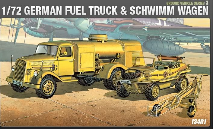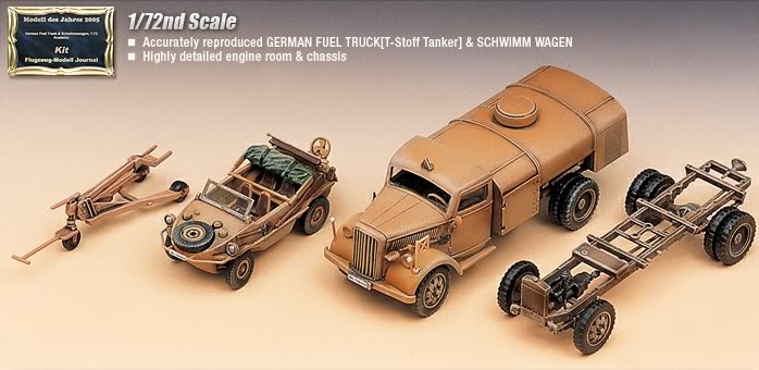 Academy 13401 1/72 German Fuel Truck (T-Stoff Tanker), Schwimmwagen & Bomb Cart (W.W.II)