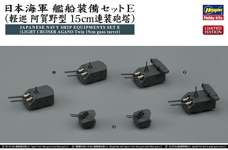 Hasegawa 40089 1/350 Japanese Navy Ship Equipment Set E (Light Cruiser Agano Class Twin 15cm Guns Turret & Twin 8cm Guns Turret)