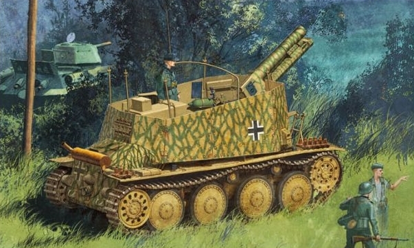 The BMM factory in Prague was developing a mid-engine Pz.Kpfw.38(t) chassis for use as a dedicated self-propelled gun (eventually named the Grille Ausf.M), but this program met with delays. In the interim it was decided to mount the 15cm s.IG.33 gun on 90 or so existing rear-engine Panzer 38(t) chassis in order to get the weapon into service as soon as possible. The resulting Grille Ausf.H was produced from February to April 1943, and it was widely used in German panzergrenadier regiments until the end of WWII.