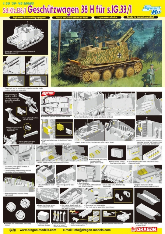 Dragon 6470 1/35  Grille Ausf.H (Sd.Kfz.138/1 Geschutzwagen 38 H fur s.IG.33/1)