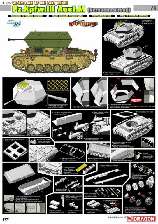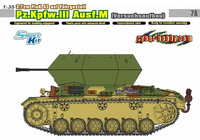 Dragon 6771(CH78) 1/35 3.7cm FlaK 43 auf Fahrgestell, Pz.Kpfw.III Ausf.M (Versuchsaufbau)