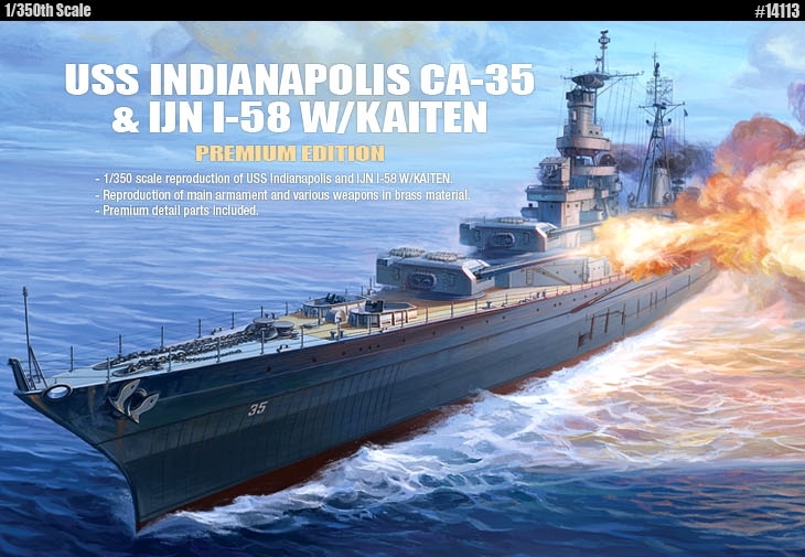 Academy 14113 1/350 USS Indianapolis CA-35 1945 & IJN I-58 w/Kaiten [Premium Edition]