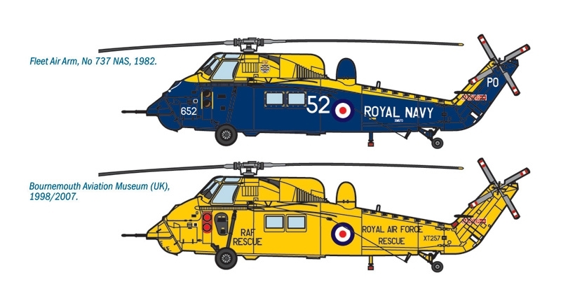 The Wessex HAS.3 was an improved version of the previous HAS.1 helicopter. Between 1965 and 1968, forty-three HAS.1 models were upgraded to the new standard, easily recognisable for the dorsal dome of the search radar that gave the HAS.3 its nickname “Camel”.Apart from this aspect, the modifications focussed mainly on the flight stabilisation system and the mission equipment, including the more effective Plessey sonar. The weaponry for anti-submarine missions typically consisted of Mk.44 torpedoes, or Mk.11 depth charges.Starting in the mid-1970s, the Wessex HAS.3 was gradually replaced by the Sea King, though it remained in service long enough to participate in the Falklands War.