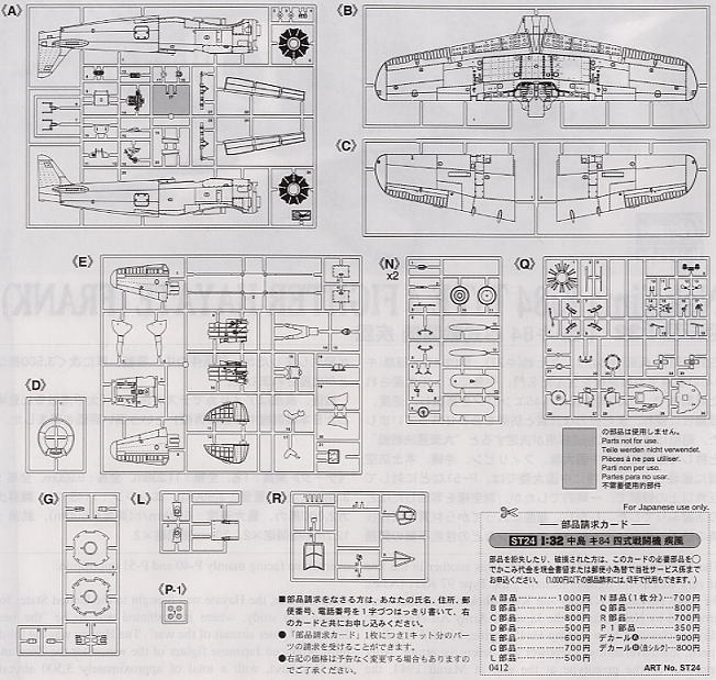 Hasegawa ST24(08074) 1/32 Nakajima Ki84 Type 4 Fighter Hayate (Frank)