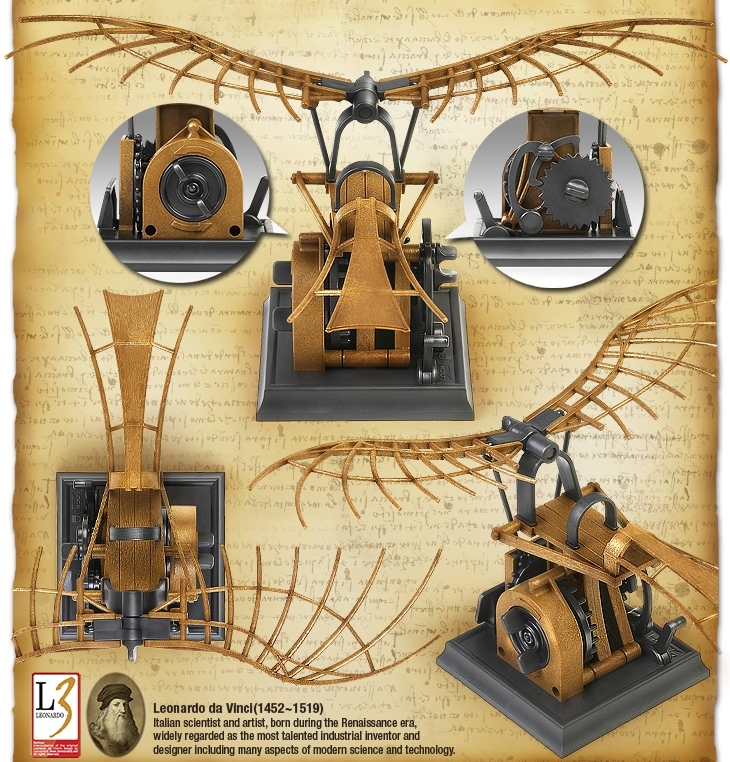 • You can move the wings using the conversion of rotary motion in reciprocating motion from another invention of Leonardo