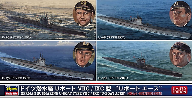 Hasegawa 30034 1/700 U-Boat Type VIIC / Type IXC "U-Boat Aces" (4 Kits)