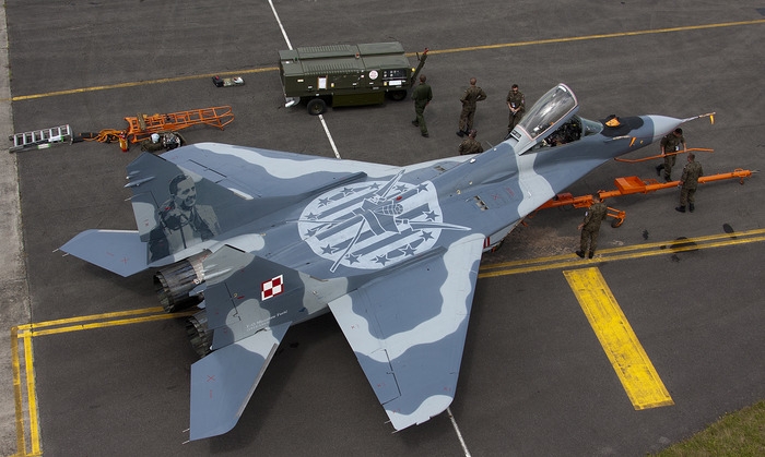 The Polish Air Force has recently started decorating the tails of their MiG-29 (9-12)s with portraits of important pilots from the history of the Kosciuszko Squadron as part of a commemorative program.