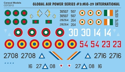 Caracal Models CD72012 1/72 Global Air Power Series #3: MiG-29 (9-12) & MiG-29UB (9-51) International (Decals for Italeri Kits)