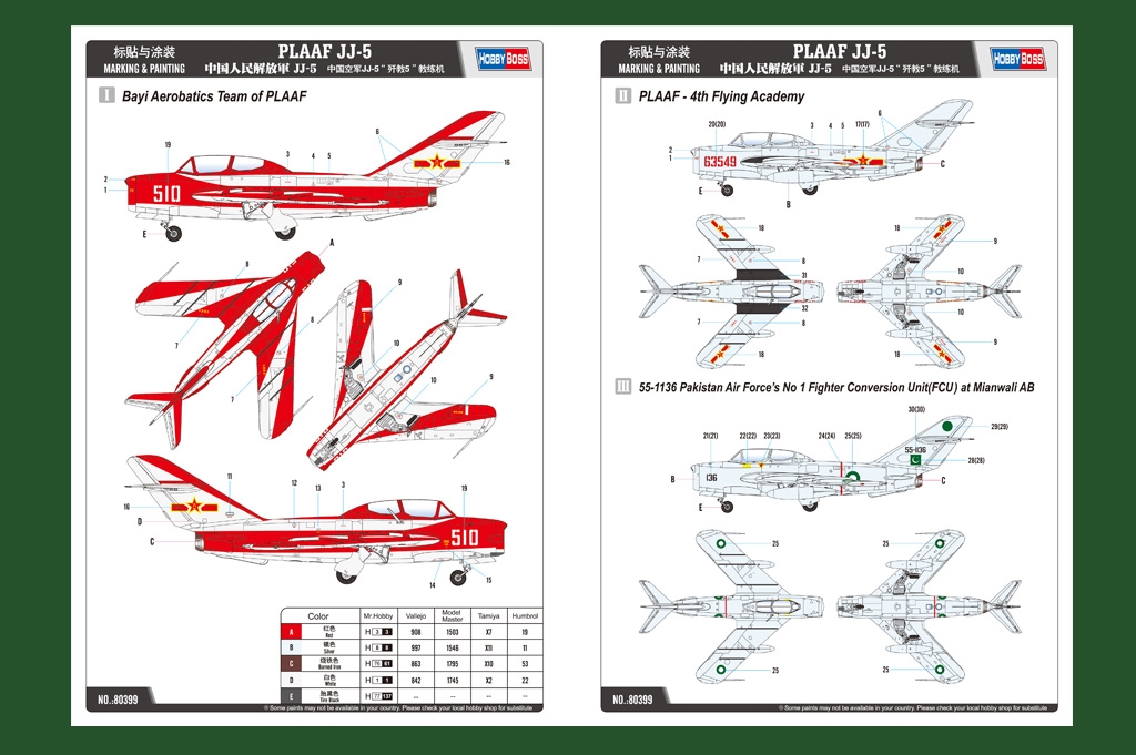 • Markings for Bayi Aerobatics Team of PLAAF; PLAAF - 4th Flying Academy & Pakistan Air Force (FT-5)