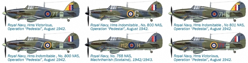 The Sea Hurricane, derived from the famous Hawker fighter, was developed to provide air cover for cargo ships convoys. The first versions were modified to be carried by merchant ships equipped with a catapult for launching the Sea Hurricanes. The ships, however, had no recovery facilities and cranes. The only alternative for the pilots was to find a friendly landing base, if autonomy could allowed it, or ditching. Despite these operating limits, the Sea Hurricane gained the first victories. The Sea Hurricane Mk Ib version has been equipped with arrest hook and the fighter could operated from aircraft carriers, such as HMS Furious and HMS Eagle, and from MAC ships, large cargo vessels with flight deck enable to launch and recover the aircrafts. From February 1942, Sea Hurricane Mk Ic, has been introduced. More than 400 planes has been produced and they were used in Mediterranean and Atlantic areas.