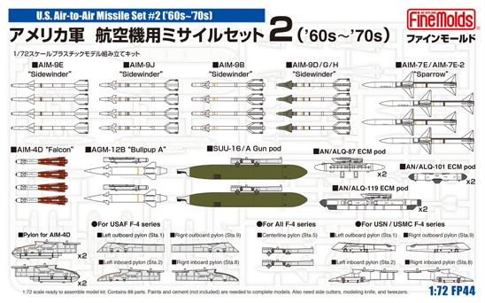 FineMolds FP44 1/72 U.S. Air-to-Air Missile Set #2 ('60s-'70s)
