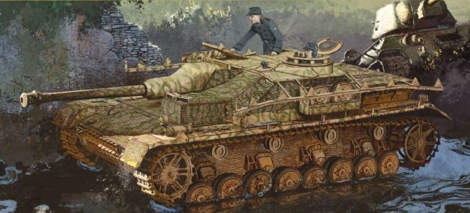 The Sturmgeschu"tz IV (Sd.Kfz.167) was designed by Krupp. Between December 1943 and the end of the war, Krupp built a total of 1108 new StuG IV vehicles at its Magdeburg plant, as well as converting another 31 from battle-damaged Panzer IVs. Like its StuG III brother, this assault gun proved to be an effective tank killer. It was operated by a crew of four – a commander, gunner, loader and driver. Main armament of the assault gun was a 75mm StuK 40 L/48 gun mounted in a cast “saukopf” mantlet equipped with 87 rounds. The vehicle was 6.7m long and weighed 25.9 tons.