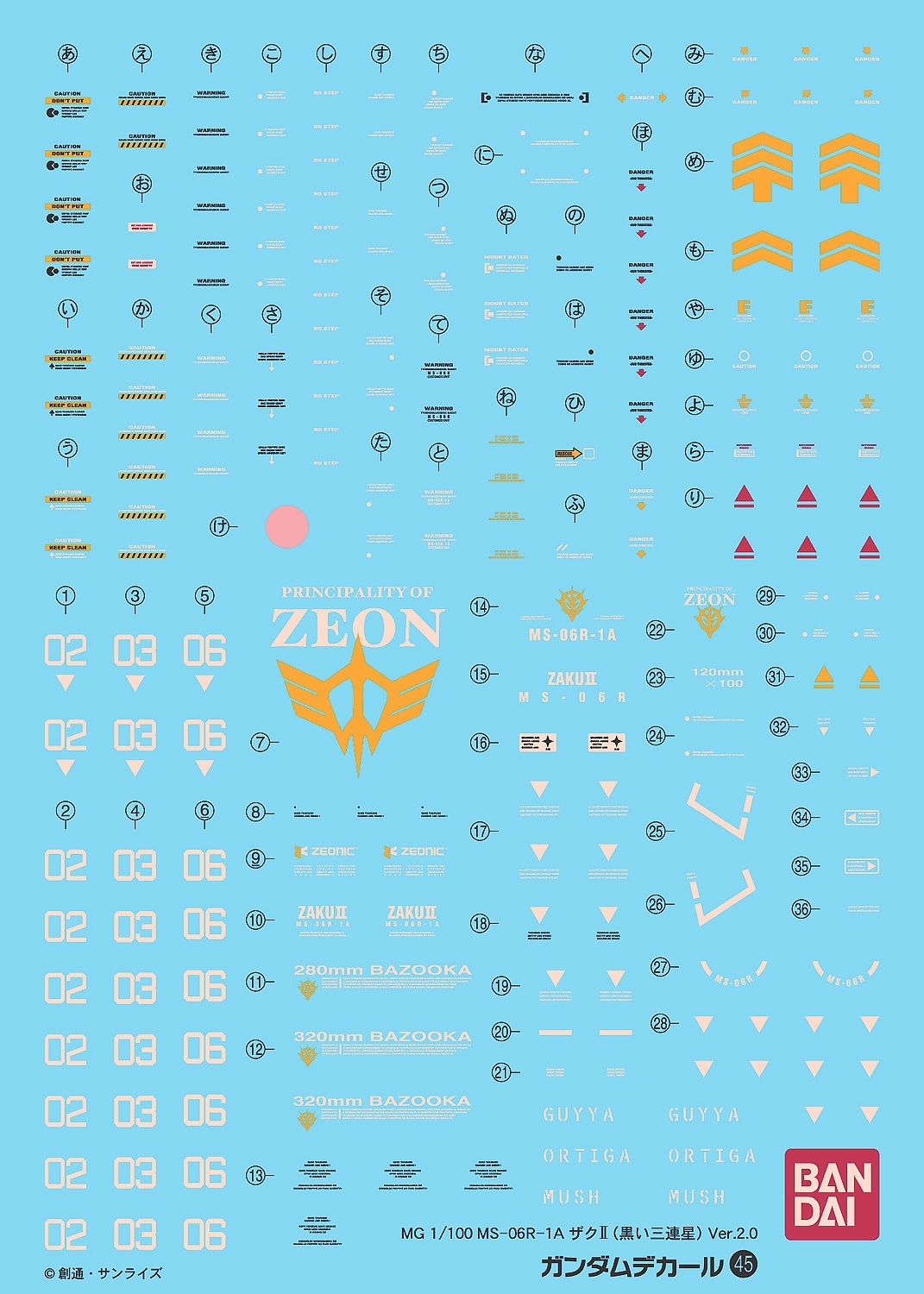 Bandai 045(153711) Gundam Decal for MG 1/100 MS-06R-1A Zaku II Ver.2.0