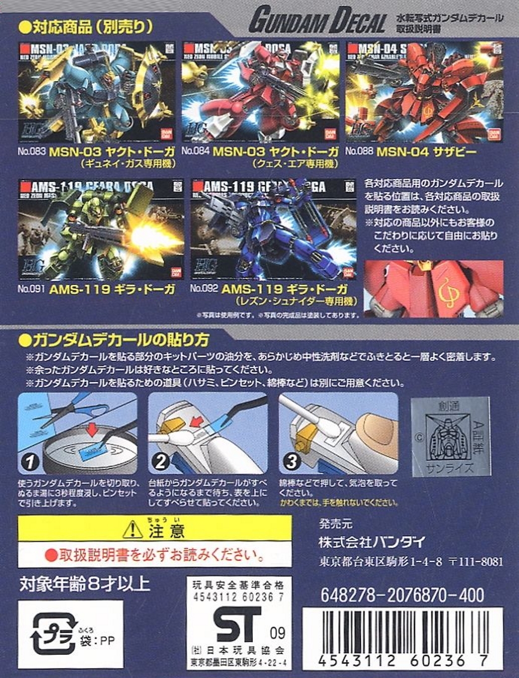Bandai 085(66799) Gundam Decal for HG 1/144 MSN-06S Sinanju