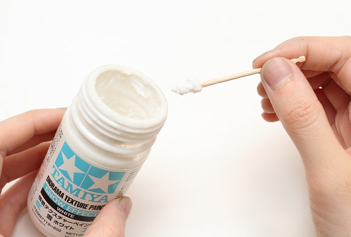 This water-based paint features a paste-like texture with white fine marble particles (0.01-0.20mm) which realistically recreate powder snow surfaces.  When using with the Snow Effect paint (87119) which has coarse marble particles, a wide variation of snow surfaces can be richly recreated. 1 bottle contains 100ml of paint which covers B4-sized area (1 coat). Drying time: 4-5 hours.