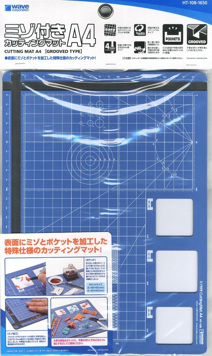 Wave HT-108 Cutting Mat (A4 size / Blue) [Grooved Type]