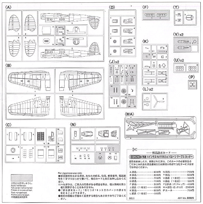 Hasegawa 00929 1/72 He111H-8 w/Balloon Cable Cutter