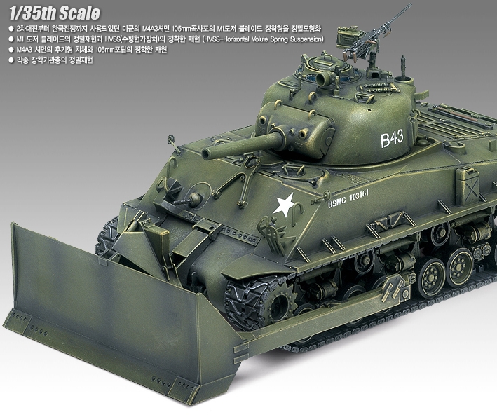 Academy 13207 1/35 M4A3 Sherman 105mm Howitzer & M1 Dozer Blade