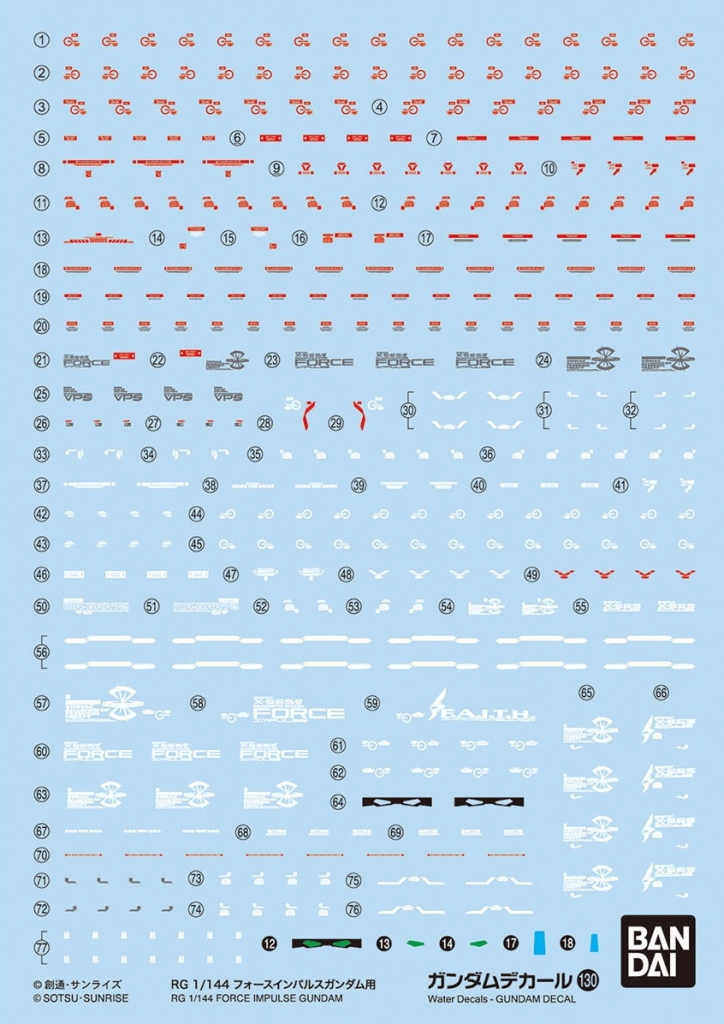 Bandai 130(2578999) Gundam Decal for RG 1/144 Force Impulse Gundam