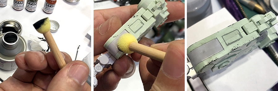 • Apply small amount of enamel paint etc. to the tip of the sponge
