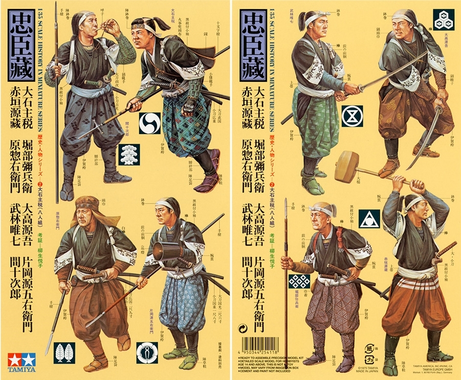 • In 1701, Lord Asano was ordered by Shogun Tokugawa to commit suicide for drawing his sword against Kira in Edo Castle, unable to bear Kira's insults against him. The next year, 47 samurai took revenge for their former Lord Asano by cutting off Kira's head. These figures recreate 8 of the 47 samurai.