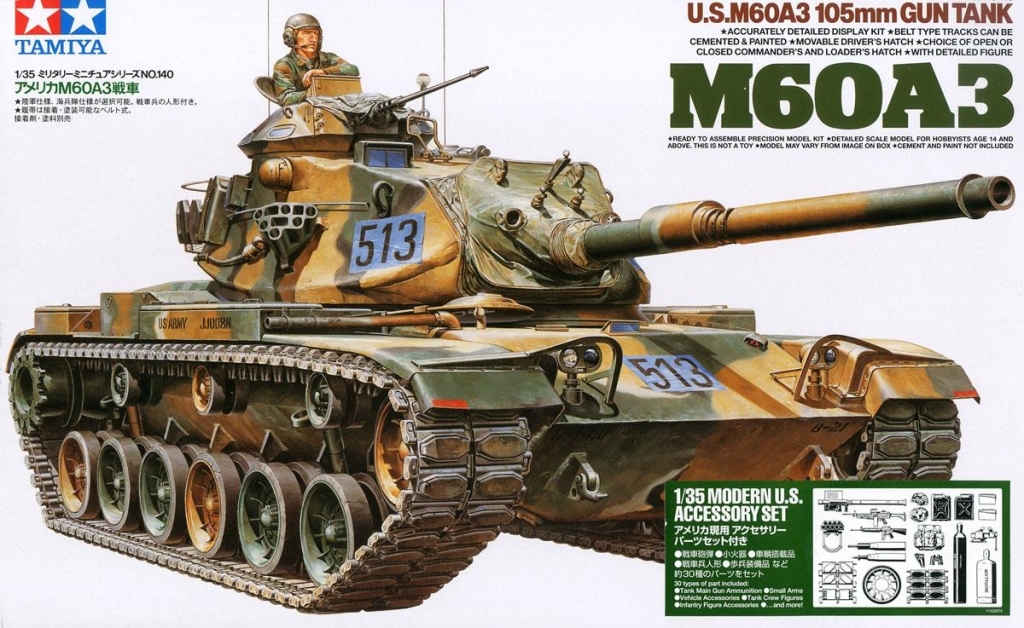 Tamiya 35140 1/35 U.S. M60A3 w/Modern U.S. Accessory Set