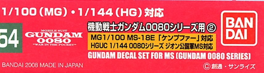 Bandai 054(155535) Gundam Decal for MG 1/100 & HG 1/144 Gundam 0080 Series (2)