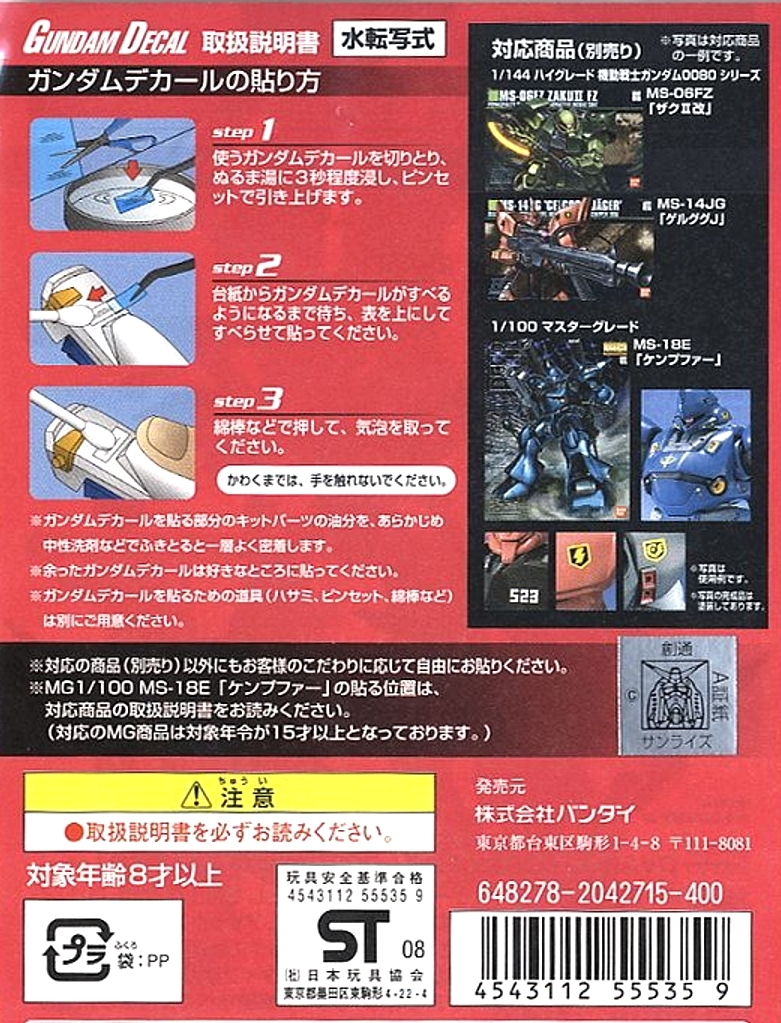 Bandai 053(155534) Gundam Decal for MG 1/100 & HG 1/144 Gundam 0080 Series (1)