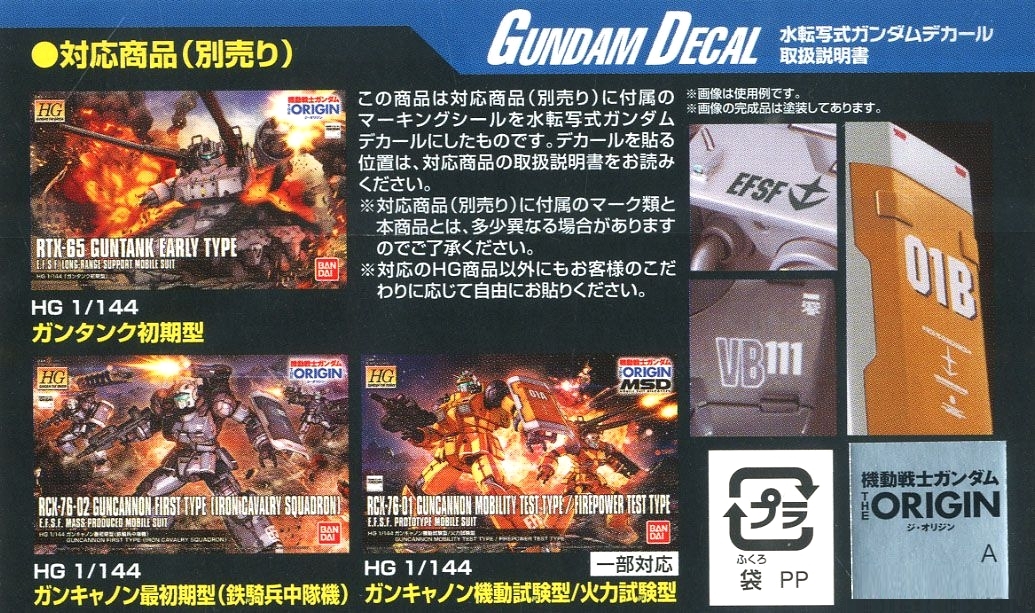 Bandai 105(19604) Gundam Decal for HG 1/144 Mobile Suit Gundam The Origin Multi-use (1)