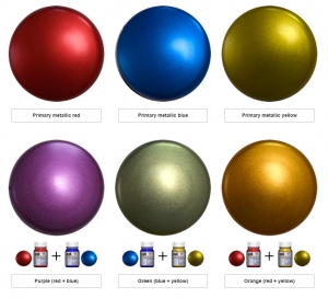 colored metallic particles + clear medium, can be mixed with other Primary Metallic Color