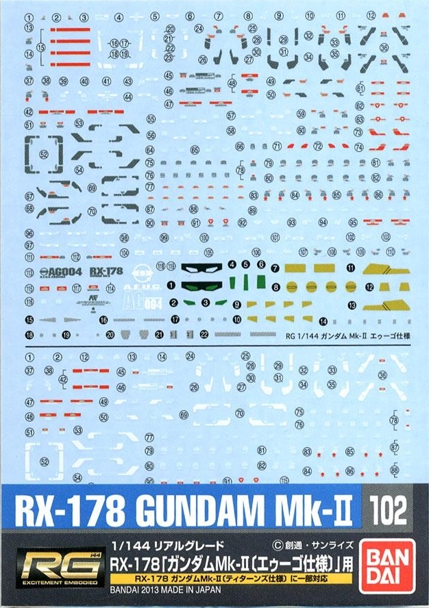 Bandai 102(186574) Gundam Decal for RG 1/144 RX-178 Gundam Mk.II