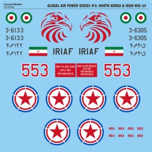 Caracal Models CD32002 1/32 Global Air Power Series #2: North Korean & Iranian MiG-29 (Decals for Revell Kit) Print this pagePrint this page