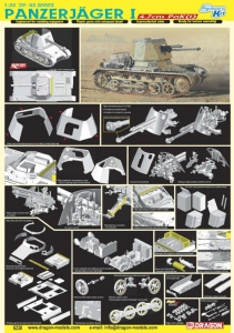 Many Panzer I Ausf. B chassis were used for tank destroyer (panzerjager in German) conversions. The 6.4-tonne Panzerjager I was Germany’s first tracked tank destroyer and it mounted a Skoda 47mm PaK 43 antitank gun, an effective weapon design that had been captured when Germany earlier occupied Czechoslovakia. A total of 202 Panzerja"ger I vehicles were converted in this way, and they fought in the Western Campaign in 1940, North Africa and the Eastern Front. Even though the vehicle had many weaknesses (e.g. highly vulnerable crew, limited gun traverse), some continued on in service in occupied Europe even after newer and better designs had appeared.Size/Weight: 38 x 24.5 x 6.5 cm / 520g