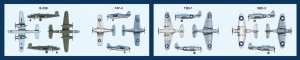 Aircraft: B-25, F-4F, TBD-1, SBD3