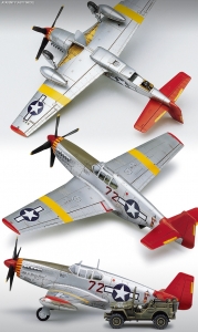 Academy 12501(2225) 1/72 P-51C Mustang "Red Tails" w/Jeep