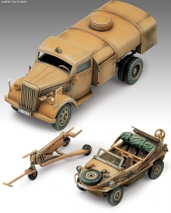 Academy 13401 1/72 German Fuel Truck (T-Stoff Tanker), Schwimmwagen & Bomb Cart (W.W.II)