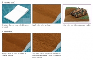 This water-based paint features a paste-like texture with ceramic particles for recreating the earth surfaces. 1 bottle contains 100ml of paint which covers B4-sized area (1coat). Drying time: 4-5 hours.