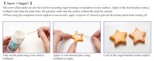 This water-based paint features a paste-like texture with white fine marble particles (0.01-0.20mm) which realistically recreate powder snow surfaces. When using with the Snow Effect paint (87119) which has coarse marble particles, a wide variation of snow surfaces can be richly recreated. 1 bottle contains 100ml of paint which covers B4-sized area (1 coat). Drying time: 4-5 hours.