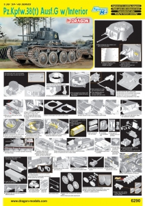 The Pz.Kpfw. 38(t) was a light tank manufactured in Czechoslovakia, and which continued in production after Germany annexed that nation. The final version of the Pz.Kpfw. 38(t) was the Ausf.G, which featured heavier armor up to 50mm thick on its frontal surfaces. Construction of the Ausf.G also utilized more welding, with a total of 321 tanks produced between October 1941 and June 1942. After this time production switched to hulls for self-propelled antitank guns. Most of these tanks served with the German army in Russia, though some also entered service with allies like Hungary, Rumania and Slovakia.Size/Weight: 38.5 x 24.5 x 6.5 cm / 500g