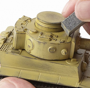 rub the finished coat with Mr. Chipping Rubber Block to expose the base color