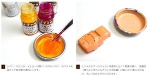 1) Mix Magenta & Yellow (primary color), add White to increase its hiding power. 2) Enamel is slower in drying, fewer brushes mark & better glossy result.